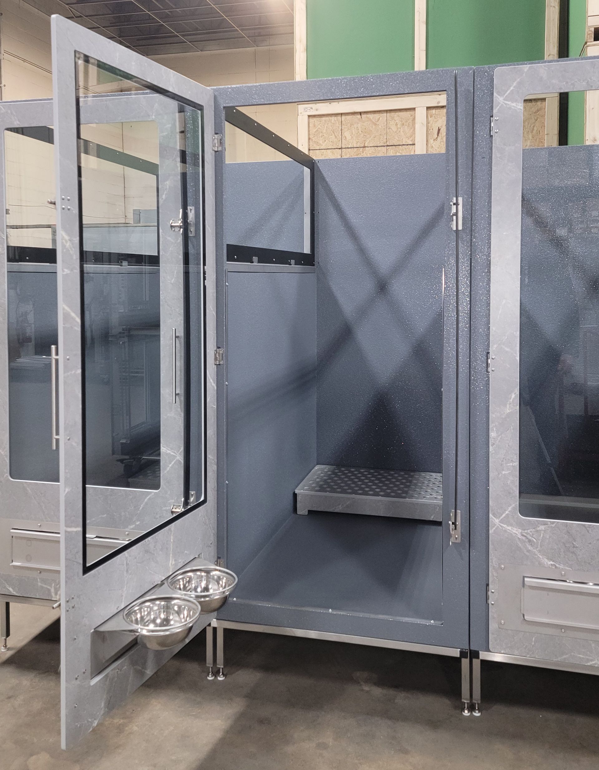 Furnished with or without drains Comfort Kennels arrive pre-assembled and are designed to go above existing facility floors.